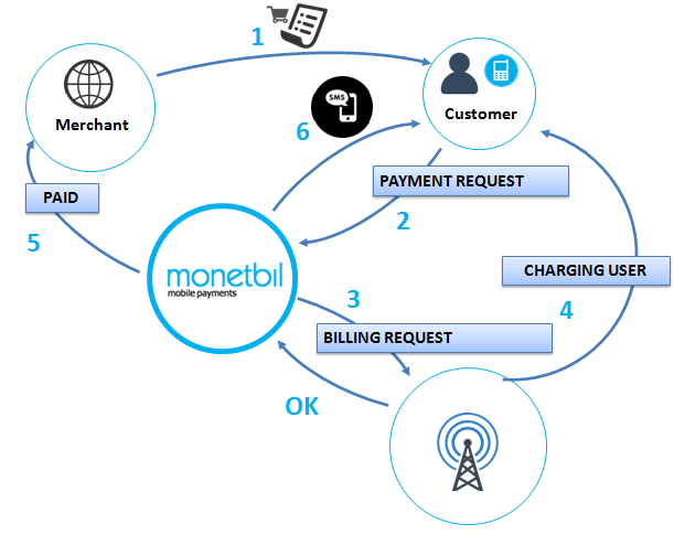 6. Monetbil sends a payment confirmation via SMS / email to the customer.
